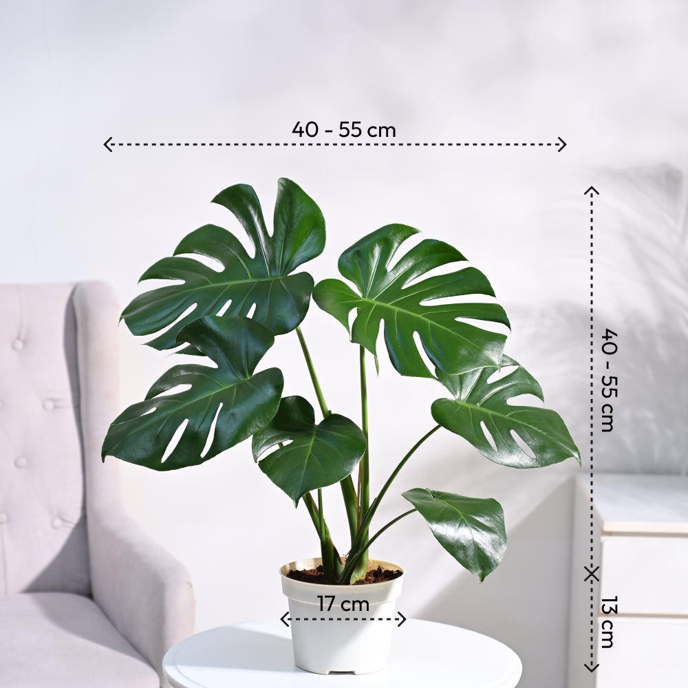 Also called the Swiss Cheese Plant, the Monstera Deliciosa is a tropical stunner brought indoors. With large leaves and wonderful fenestrations that resemble a Swiss cheese slice, this plant has easily become one of the crowd-favorites. If youre looking for an indoor plant that will effortlessly and instantly uplift your home decor, the Monstera Plant should be your go-to!Order the Premium Monstera Deliciosa Plant, a natural air purifier, to elevate your home decor. It has 4.5+ ratings and is loved by many. Buy today and enjoy safe home delivery!Order the Premium Monstera Deliciosa Plant, a natural air purifier, to elevate your home decor. It has 4.5+ ratings and is loved by many. Buy today and enjoy safe home delivery!