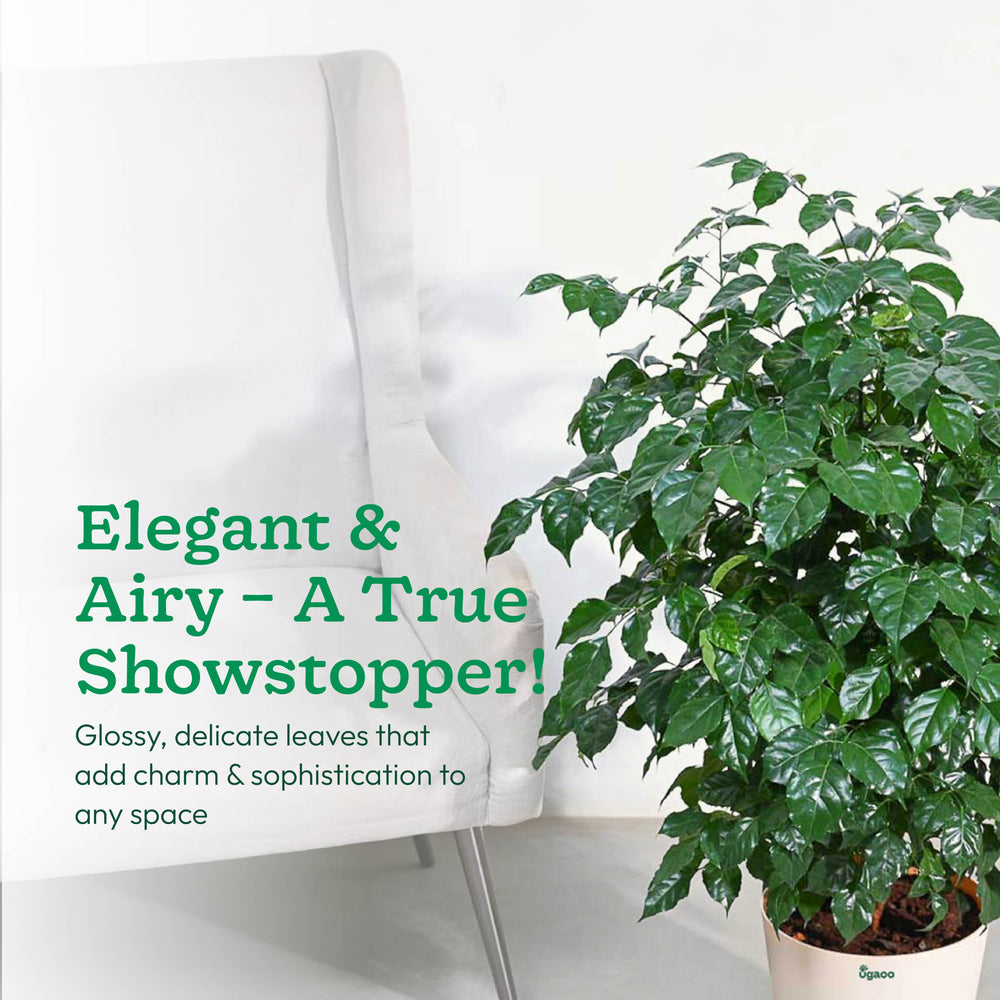 With its glossy green leaves and large growth, this indoor China Doll plant is basically a tree. The woody branches of the Radermachera sinica complement its dark green leaves perfectly, creating the most wonderful indoor aesthetics. Interestingly, the plant being called the China Doll Tree has nothing to do with the country but everything to do with the fact that the tree looks - quite literally - like a doll house tree. The best part? This plant is relatively easy to care for and adds an instant forest-like feel to any space, serving as an excellent plant for balconies and patios.Improve indoor air quality with the China Doll (Radermachira) Plant by Ugaoo, a 4.5+ rated natural air purifier that adds aesthetic value to any room. Order Now!Improve indoor air quality with the China Doll (Radermachira) Plant by Ugaoo, a 4.5+ rated natural air purifier that adds aesthetic value to any room. Order Now!
